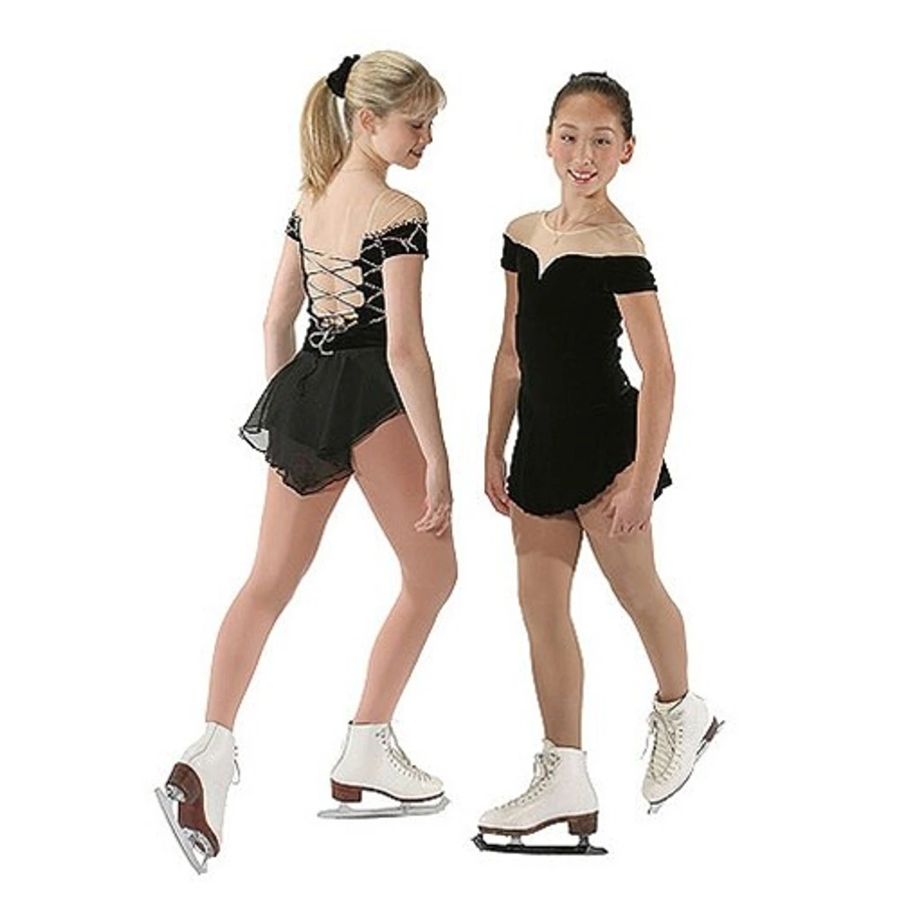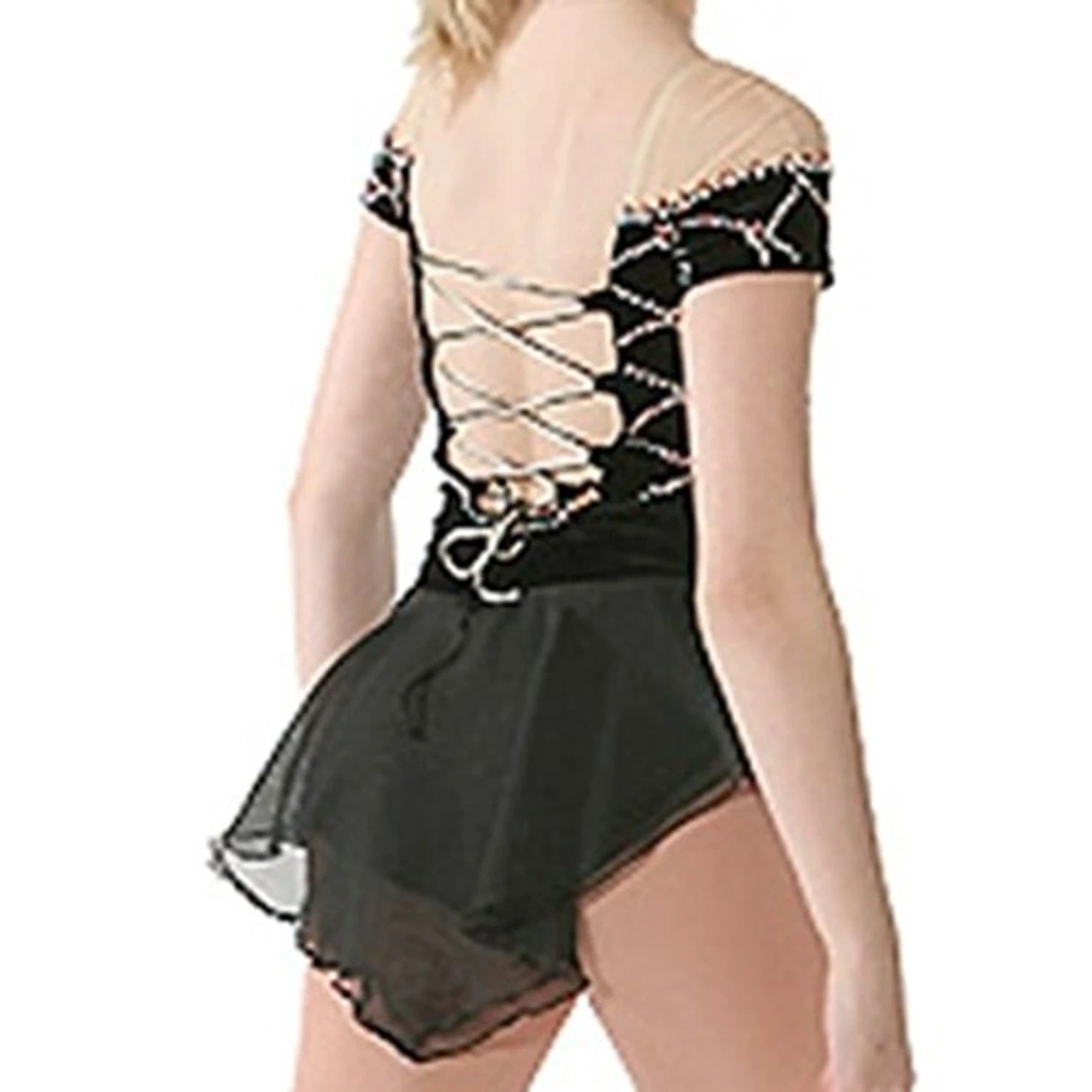 An elegant dress ready for your classical program. Stretch velvet with double Mesh skirt. Low back is laced with satin rattail cording. Also available with matching velvet skirt. *** DRESS COMES UNDECORATED UNLESS OTHERWISE NOTED IN THE DESCRIPTION *** Dresses pictured with crystalling can have 1000-1600 crystals applied. This decoration pattern is shown only as an example and is very detailed for photographic purposes. All crystalling is done in house, and is always decorated as close to the pattern shown as possible with the amount of crystals order by the customer. The pattern may vary based on dress color, size and quantity of crystals ordered. If you would prefer a specific design for crystalling please include the information in the customer comments box when checking out. * Custom Decoration Package – Type quantity wanted into customer comments box during check out price will be calculated after order is processed and a confirmation receipt will be e-mailed to you. ***Please note: Please allow 3-4 weeks for standard production on some dresses**