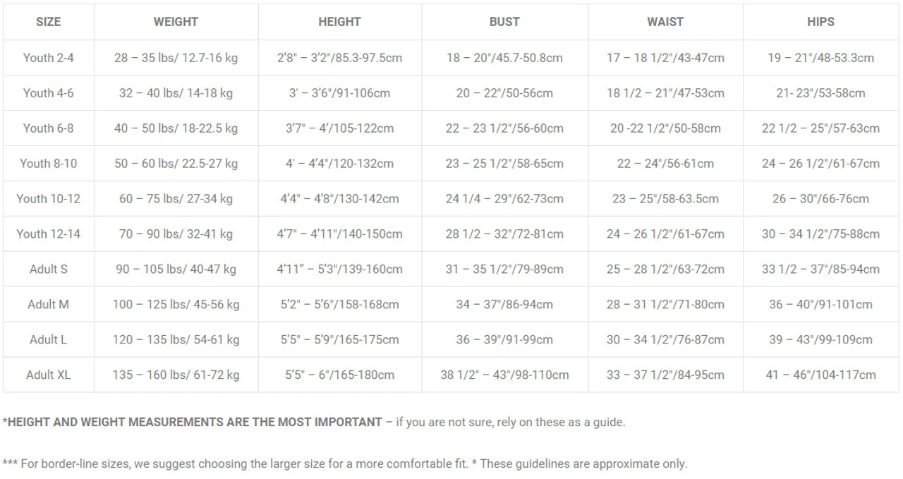 | Size | 6-8, 8-10, 10-12, 12-14, Adult Small, Adult Medium, Adult Large, Adult X-Large |