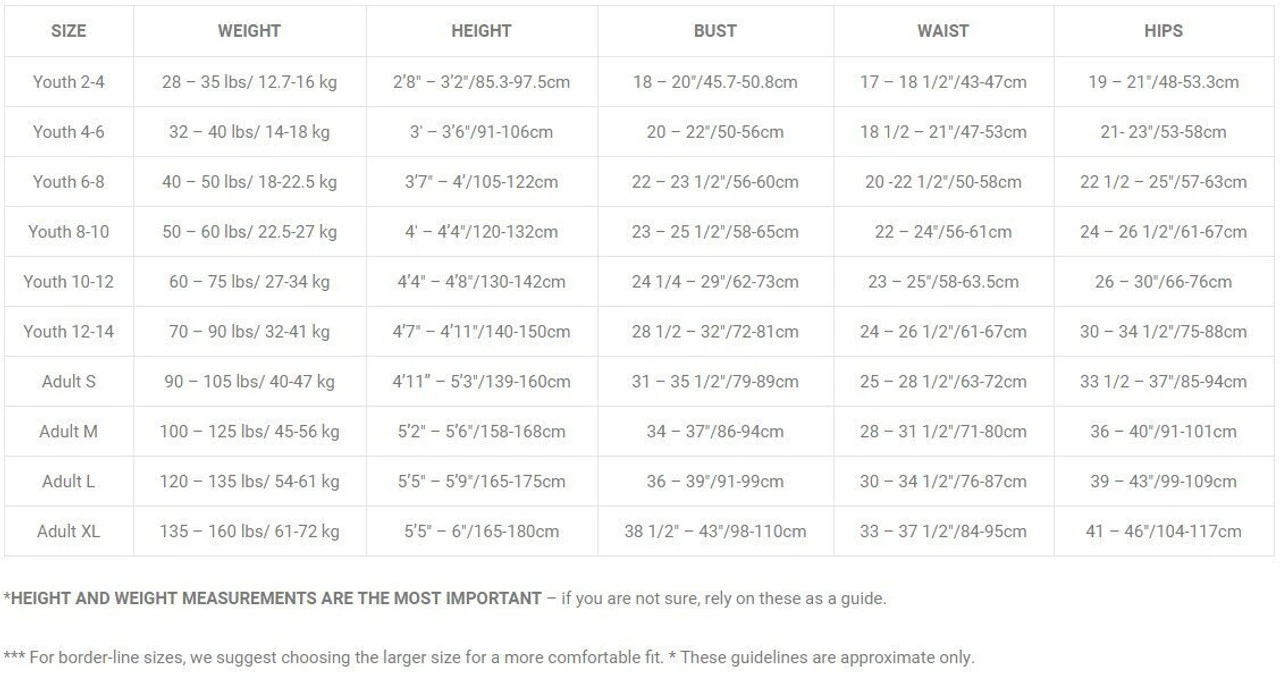 | Size | 8-10, 10-12, 12-14, Adult Small, Adult Medium, Adult Large, Adult X-Large |