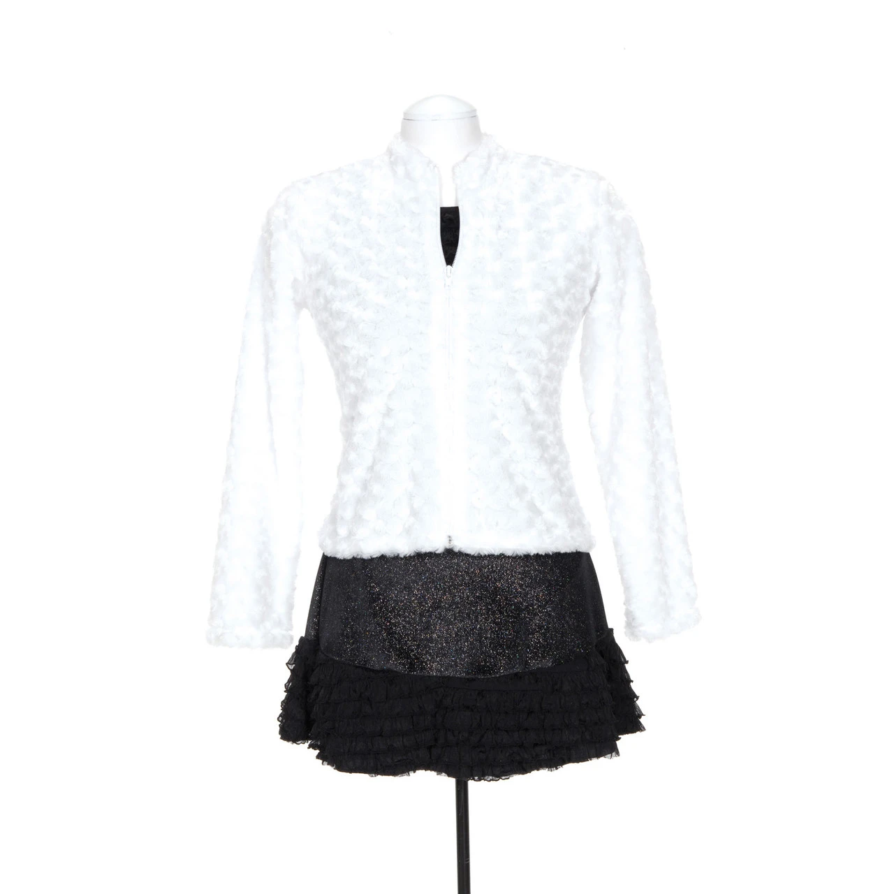 Super soft & cozy, this fully zippered jacket is smooth on the inside and a lovely swirled fur on the outside.