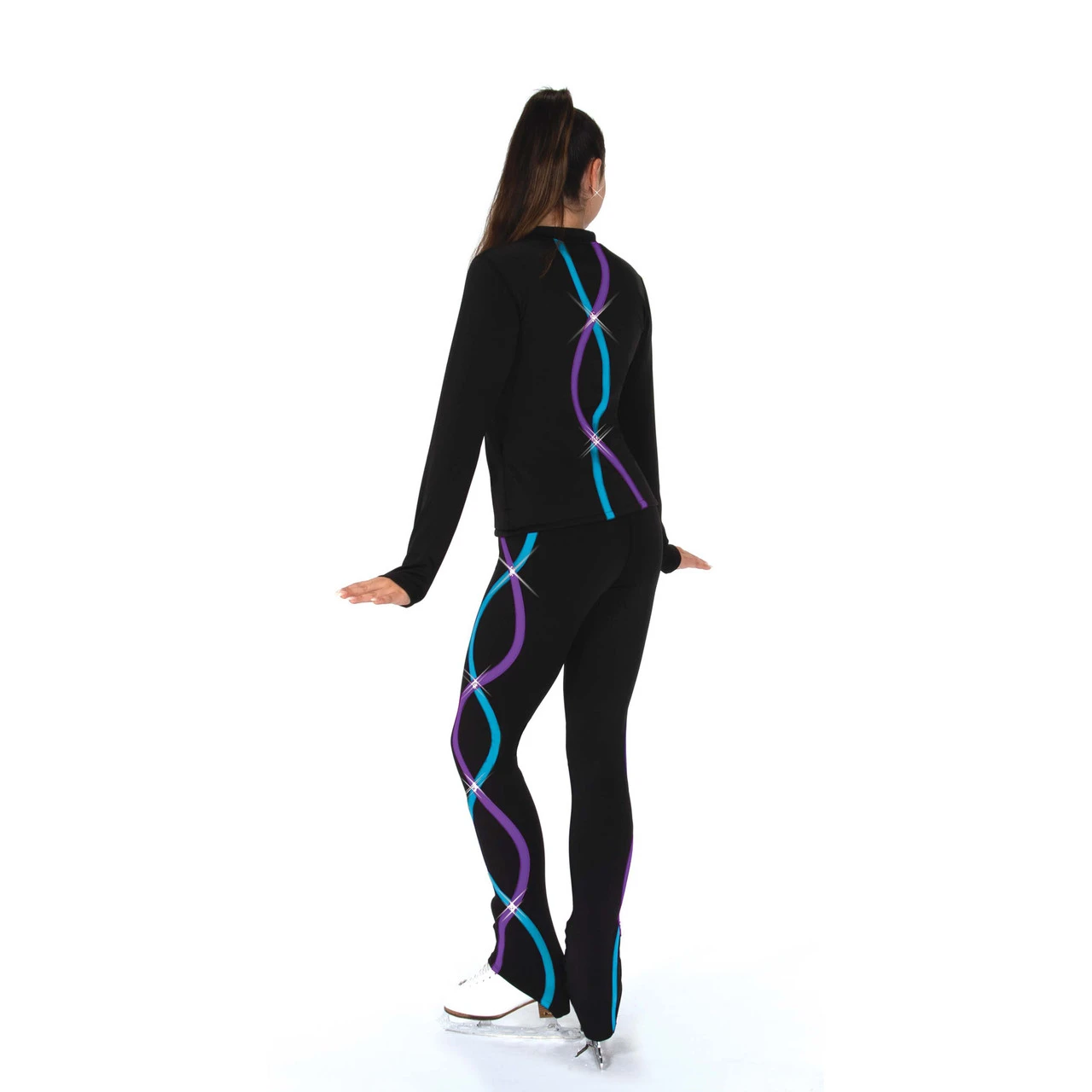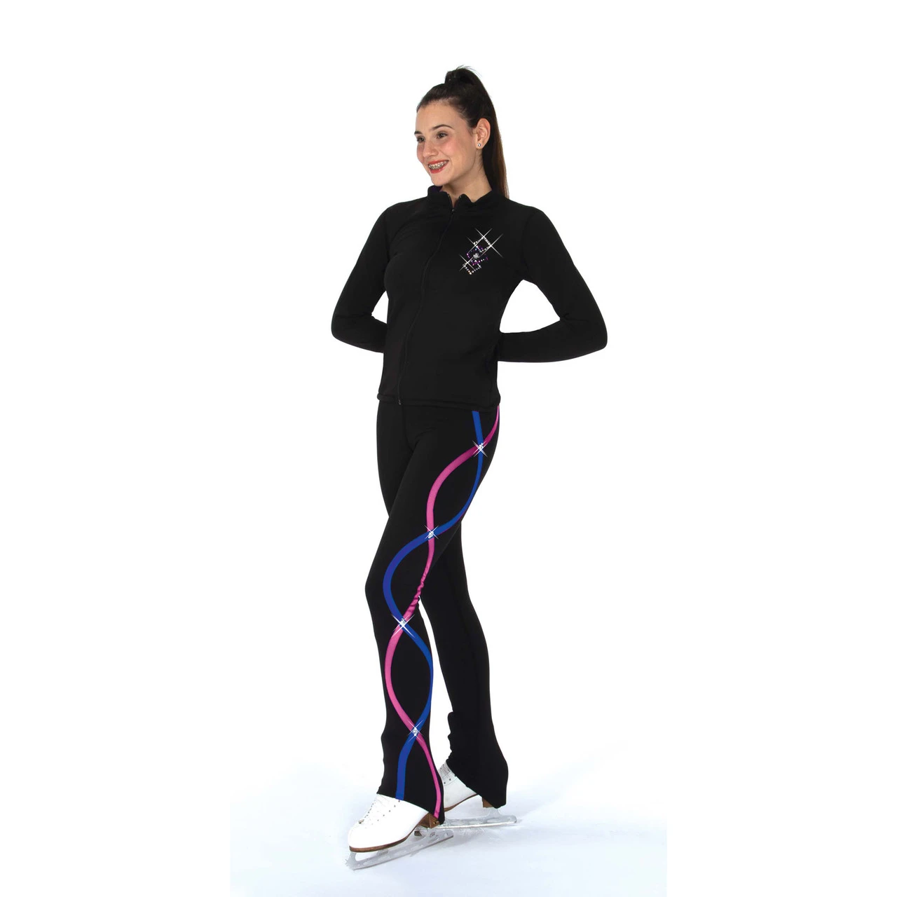 Warm fleece jacket with co-ordinating ribbons of contrasting colour down the back and crystal details where they cross paths. Full front zipper and zippered side pockets.